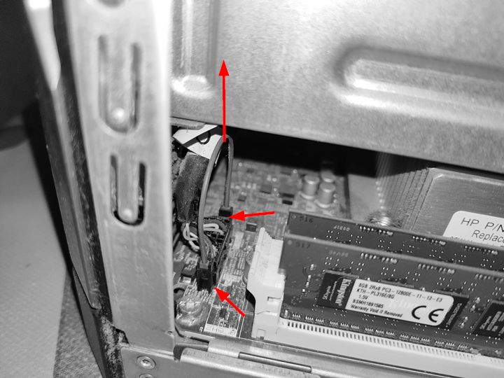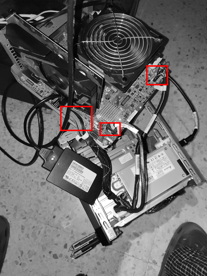 After remove the cover, we're going to disconnect from motherboard the cable connections; supply, frontal rack, frontal panel, sensors and rear fan: