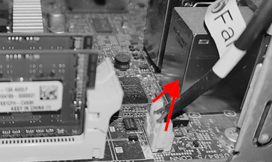 To boot the motherboard we must have connected the fan, but after retire the motherboard, the connector not arrive so we need get the fan. We need unscrew the crews and get the fan from top free space: