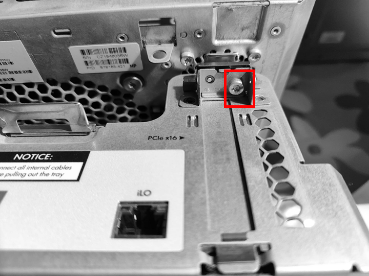 After extract section of motherboard from rest of chassis, we need to remove the plate of expansion slot of PCIe. You need unscrew the crew of plate of back pane slot and remove the plate: