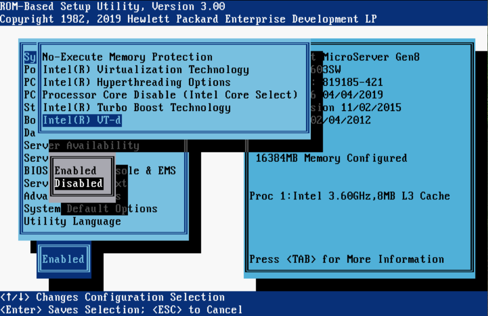 When boot for first time you must disable the processor virtualization. While run the POST boot, press F9 to select the BIOS configuration mode setup: