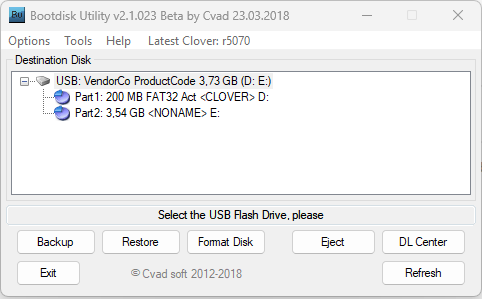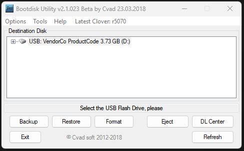 Now connect the USB stick were you are going to install Clover. And select the USB stick and the button Format: