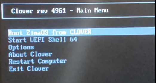 Now connect the ZimaOS installer USB stick and will be appear in menu the option Boot ZimaOS from EFI: