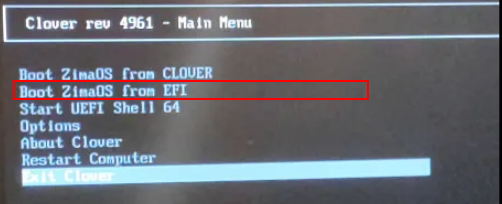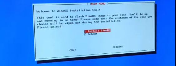 After select the option Boot ZimaOS from EFI will starts the installation: