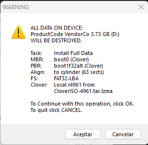 Now you can see a warning to confirm the erase task data of USB. Confirm to continue: